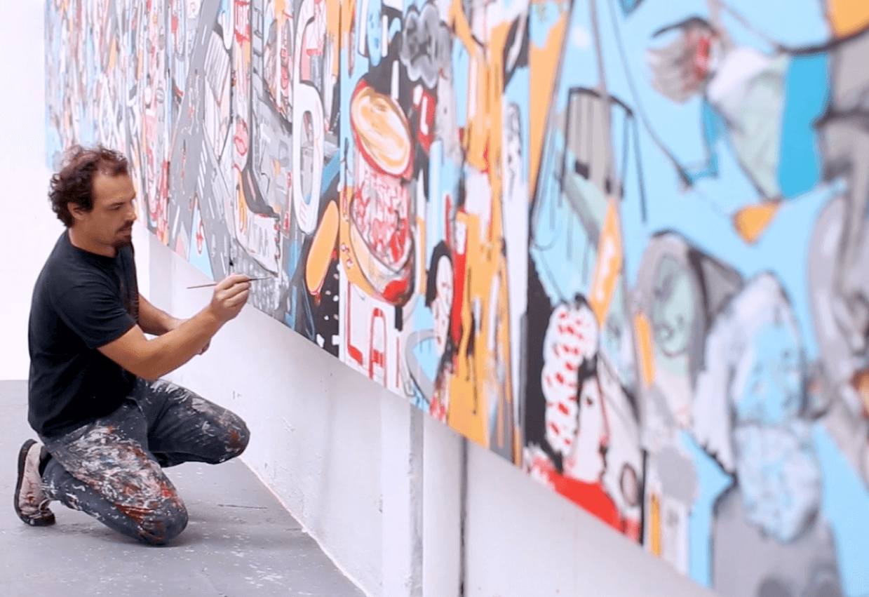 La palabra llave del mural es juego. Desde las escondidas, pasando por la rayuela y el fútbol, hasta el poli-ladrón.
