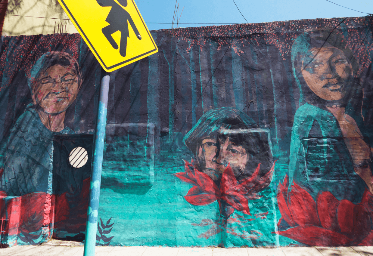 Una pintada en modo caricia. Que propone una pausa, o intenta hacerlo, al ritmo acelerado de la ciudad.Volver a Murales